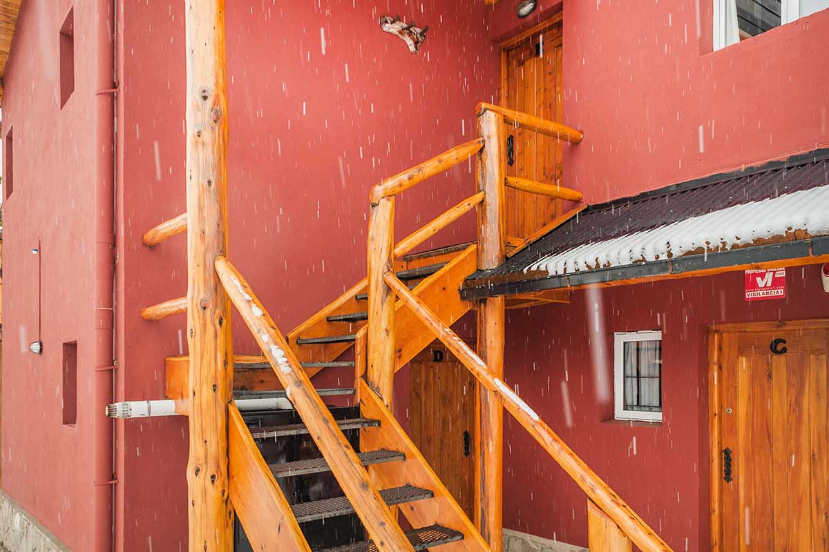 Duplex en 1er piso, acceso por escalera exterior. En la primer planta, Cómodo living (con sillón cama), hogar a leña y amplia vista en 90º al Cerro Catedral, comedor integrado a la cocina (cocina con encendido eléctrico, cuatro hornillas, horno y parrilla), equipamiento para 10 personas (12 platos, 12 vasos, cubiertos y demás), heladera con freezer, microondas, cafetera eléctrica. Un dormitorio principal en suite con cama matrimonial 1.60 ancho, baño completo con hidromasaje y secador de cabello. Segundo dormitorio dos camas con 1 cama carro o una cama matrimonial 1.60 ancho, segundo baño con ducha. En la planta alta, mezzanine 1 cama cucheta, 1 cama 1 plaza y 1 camas bajas, tercer baño con ducha. Calefacción por radiadores. Televisión Smart 42″, Directv. Luz de emergencia
